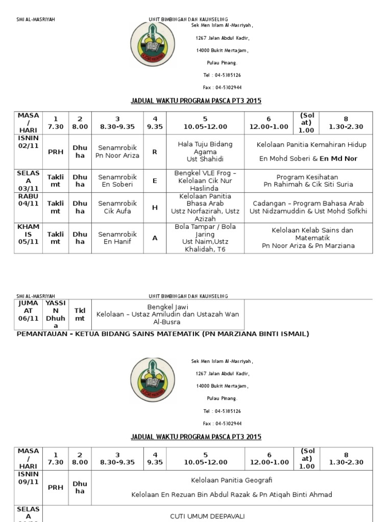 Related : Jadual Pt3 2017 Pdf - Jadual Waktu Peperiksaan PT3 Tahun 2018 - Jadual kerja sejarah pt3 2017..