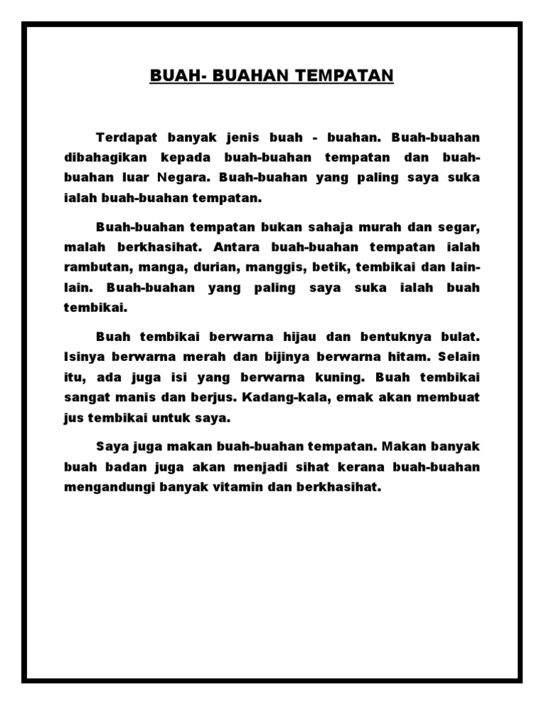 Contextual translation of kebaikan makan buah buah tempatan into english. Hal ini demikian kerana buah buahan tempatan lebih berkualiti dan membawa banyak kebaikan terhadap kita berbanding dengan buah buahan eksport yang mahal. Buah manggis kerap muncul apabila tibanya musim buah durian. Perkongsian kali ini, admin akan berkongsi tentang mengenai gambar mewarna buah buahan tempatan ini. Di kl ada beberapa tempat yang boleh korang makan durian dan kualiti memang terjamin. Contohnya, buah jambu batu mengandungi vitamin c dan buah limau mengandungi asid yang boleh menghadamkan makanan yang kita makan. Download now lukisan buah buahan tempatan ttct. Fakta buah buahan tempatan contoh karangan soalan english tahun 4 kar faedah memakan kebaikan. Buah tempatan ketiga yang semakin sukar untuk ditemui ialah buah kundang. Buah buahan tempatan merupakan buah buahan yang paling hangat di pasaran negara kita khususnya buah durian. Jadi, jika anda memiliki misi ingin menurunkan berat badan, anda dapat. Kendati demikian, ada beberapa waktu makan makan buah saat atau sebelum makan besar dapat meningkatkan manfaat ini. Download now contoh lukisan buah buahan tahun 4 pusat sumber st edmund limbang.