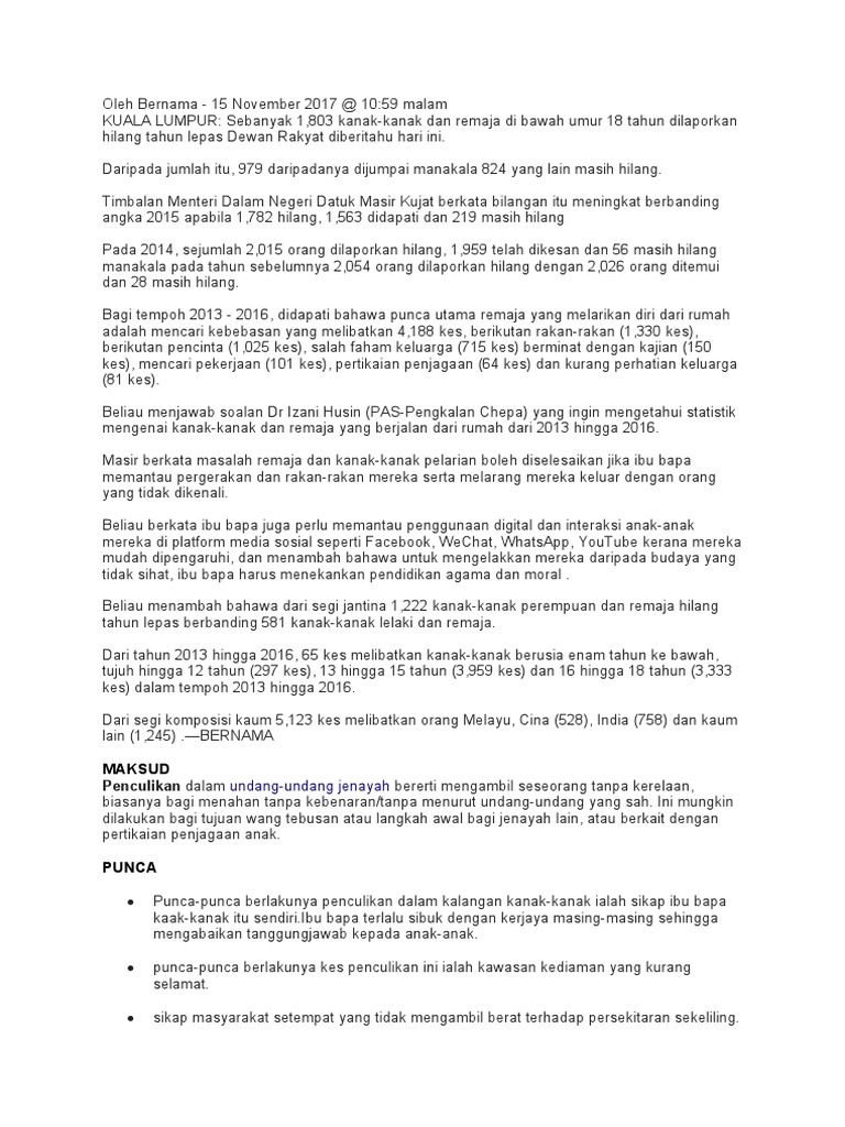 Related : Statistik Jenayah Remaja 2017 - Pdf Akta Kesalahan Kesalahan Seksual Terhadap Kanak Kanak 2017 Penambahbaikan Perundangan Berkaitan Jenayah Seksual Terhadap Kanak Kanak Di Malaysia / Statistik bagi kesalahan berkenaan mencatat tiada perubahan daripada segi jumlah pesalahnya yang mana pada tahun 2016, terdapat 137 pesalah dan 2017 juga terdapat 136 pesalah..